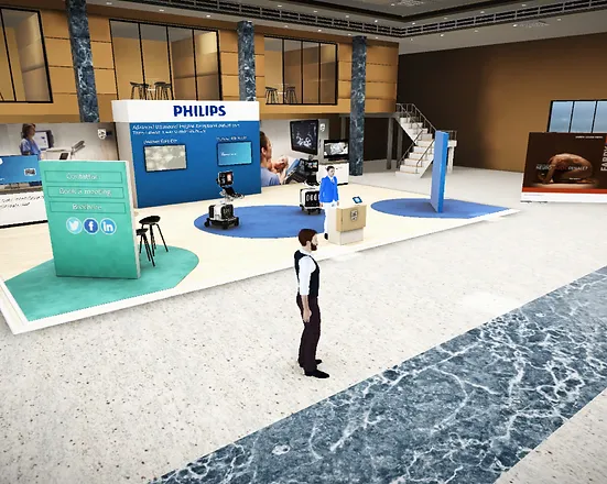Chat with people and staff, explore products, meetings, videos, product sheets or join a conference.